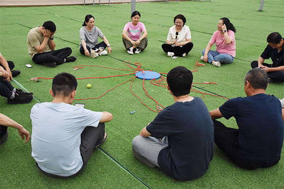 講座結(jié)束后,胡君玲老師帶領(lǐng)大家開啟了充滿趣味與互動(dòng)的團(tuán)輔減壓活動(dòng)。活動(dòng)以輕松的“破冰環(huán)節(jié)”拉開序幕,“笑傲江湖”游戲讓現(xiàn)場(chǎng)氛圍迅速升溫,教師們放下拘謹(jǐn),在歡聲笑語中打破距離感;隨后的“主題活動(dòng)環(huán)節(jié)”更是將氛圍推向高潮。“歡樂氣球戰(zhàn)”中,教師們分組協(xié)作,在躲避與進(jìn)攻間享受運(yùn)動(dòng)的快樂,釋放緊繃的神經(jīng);“不倒森林”考驗(yàn)著團(tuán)隊(duì)的默契與協(xié)作能力,大家齊心協(xié)力保持竹竿直立,在一次次嘗試與調(diào)整中,深刻體會(huì)到“團(tuán)結(jié)就是力量”;“同心鼓舞”環(huán)節(jié),教師們圍繞鼓面共同顛球,隨著顛球數(shù)量的不斷增加,現(xiàn)場(chǎng)歡呼聲此起彼伏,團(tuán)隊(duì)凝聚力在這一刻得到充分彰顯?;顒?dòng)最后,“鼓勵(lì)按摩操”讓教師們?cè)谙嗷グ茨?、彼此鼓?lì)中傳遞溫暖,舒緩身體疲勞;“感悟分享”環(huán)節(jié),大家踴躍發(fā)言,分享活動(dòng)中的收獲與感悟。